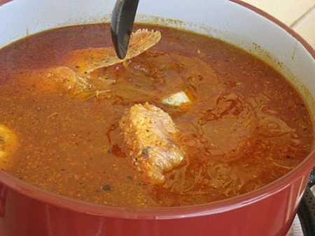 17. En un cazo ponemos un poco de caldo de hervir el pescado, una cucharada de allioli, removemos y lo agregamos al pescado por encima.