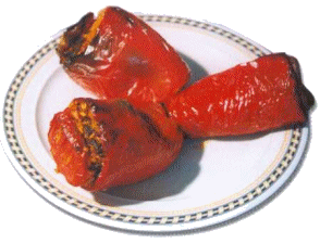 Previamente, habremos cortado los pimientos por arriba en redondo y les habremos quitado el corazón y las semillas o pepitas, enjuagandolos con agua y dejandolos escurrir.