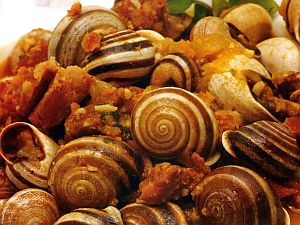 Se empieza por el proceso de "engañar" a los caracoles, limpiándolos primero en abundante agua y poniéndolos luego en una cazuela con agua tibia y los bordes cubiertos de sal hasta que salgan los cuerpos de su caparazón.