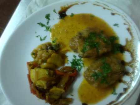 Cuando esté casi cocida la carne, incorporar la mostaza, la mermelada de mandarina, las hierbas provenzales, las avellanas y el perejil, que previamente se habrán picado con el mortero.