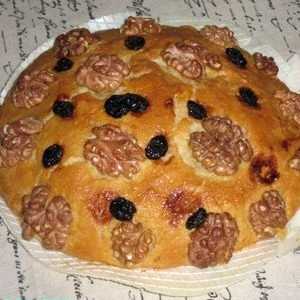 Cuando doble el tamaño, pintar por encima con el resto de la clara de huevo y decorar con las nueces y las pasas que nos quedan.