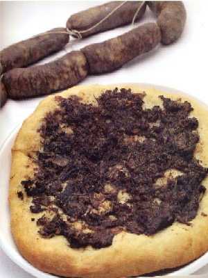 Coca de botifarra de ceba, torta de morcila con cebolla
