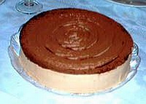 En un molde desmontable, tiramos por el fondo las nueces deshechas y volcamos sobre ellas la pasta con cuidado, y la ponemos al congelador durante unas 3 horas.