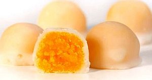 Cada una de las bolitas se reboza en el azúcar glas, hasta que entre todas absorban todo el que quede formando una piel sobre el interior de yema.