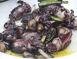 Los chipirones solo los enjuagaremos un poco, sin limpiarlos internamente.