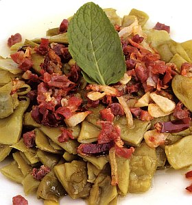 Luego, se escurren bien y se cortan las judías a trocitos de 3 a 4 centímetros y se reservan.
