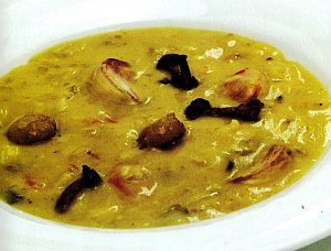 En un caldero se sofríen en aceite caliente y a fuego lento los tres ingredientes hasta que estén bien dorados.