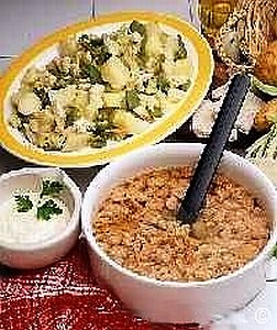 valenciano de magro entreverado y cabeza con huevo y piñones)