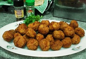 - Sirve las albóndigas en una fuente y acompaña con vegetales (pimiento rojo frito en aros, pisto, alcachofas fritas, etc...).