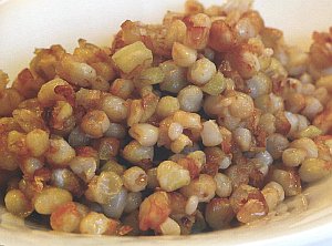 Si no disponemos de brasas, podemos hacer el preparado frito, poniendo un chorrito de aceite en la sartén y poniendo los granos tiernos desgranados a freir a fuego lento hasta que doren.