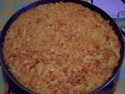 8. Para las medidas de la paella y el cálculo de agua, podemos tomar como buenas las de una paella, pero teniendo en cuenta que tanto el bacalao como la coliflor sueltan agua, por lo que deberemos reducir un poco la cantidad de la misma, aunque siempre deberemos recordar que aumentando el fuego evaporaremos más si vemos que nos sobra agua, y reduciendo el fuego evaporaremos menos si nos falta, sin alterar en ninguno de ambos casos la cocción del arroz y los demás ingredientes.