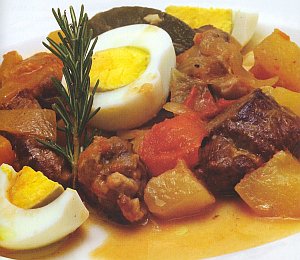 6. En el plato de cada comensal, serviremos sobre el guiso un huevo duro cortado en dos mitades.
