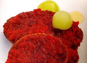 1. En frío, tomamos unas buenas rebanadas de pan y las untamos abundantemente con la sobrasada.