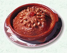 2. Cuando todo está bien mezclado, que la pasta resultante sea homogénea, se pone todo en una cazuela de barro haciendo que nos quede como en forma de montaña en el centro, y se decora por encima con las almendras que teniamos reservadas.