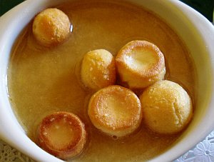 6. Hay quien gusta en vez de la sémola, usar el caldo cortando unos taquitos muy pequeños de jamón y rallando un huevo duro por comensal, aunque no es lo típico.
