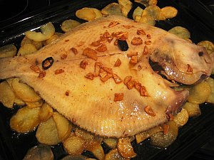 6. Para el horneado del pescado, existe otra técnica para que no se nos reseque, y que consiste en poner en el horno bajo la llanda otra con agua, cuya evaporación evitará que se reseque el guiso.