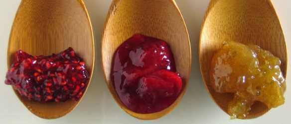 Mermelada: se trata de una conserva de fruta cocida en azúcar. Para ello se utilizan piezas enteras de fruta, troceadas o trituradas. El contenido mínimo de fruta ha de ser de un 30%. Cuando se trata de mermelada extra, este porcentaje sube al 50%.