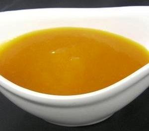Se sirve fría con budines y caliente para acompañar cerdo o pato asado.