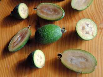 Esta mirtácea, Feijos Sellowiana, nativa del Uruguay, de Argentina y del Brasil meridional, se encuentra hoy en día difundida en todas las otras regiones subtropicales del mundo, y ha sido importada incluso en el Sur de Francia, donde su difusión ha sido, sin embargo, siempre limitada y cultivada casi exclusivamente con fines ornamentales.