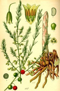 • La esparraguera es una hierba vivaz con la cepa gruesa y muy desarrollada.